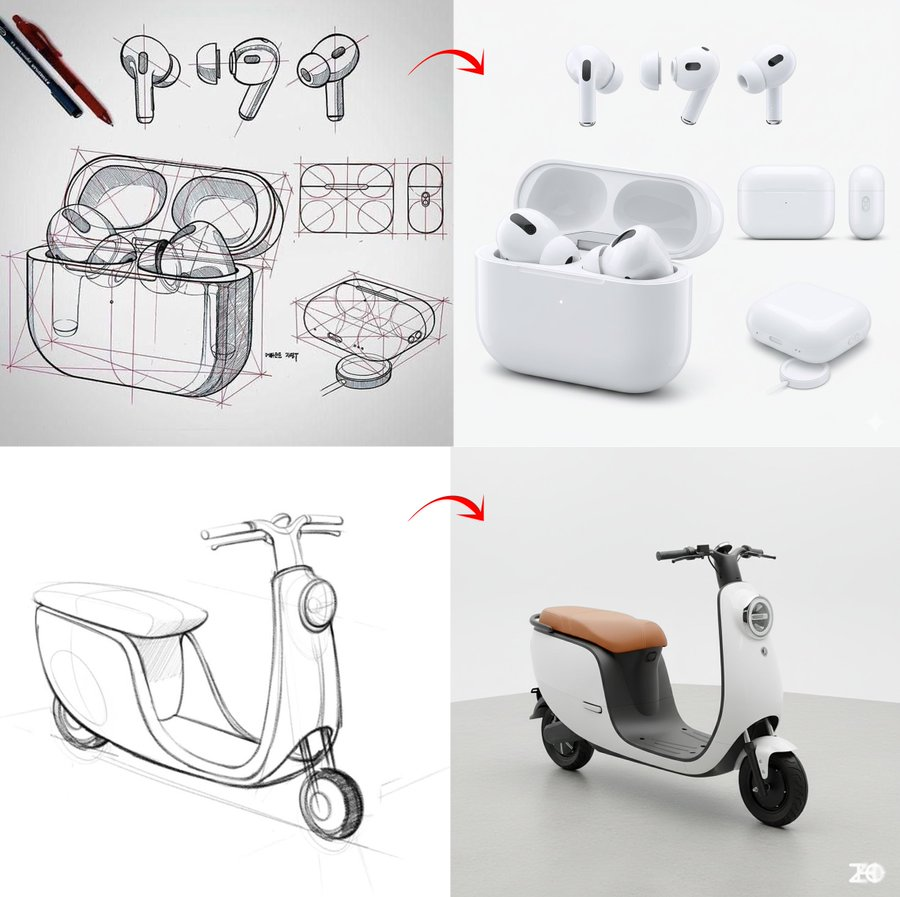 把圖一變成圖二那樣的四宮格,從草圖逐漸到上色渲染