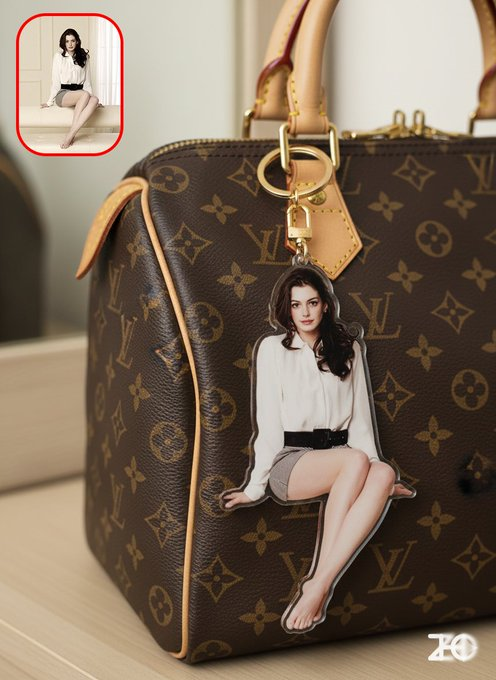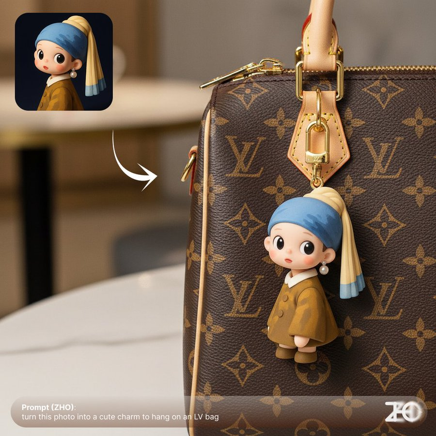 把這張照片變成一個可愛掛件/亞克力材質的扁平鑰匙扣/橡膠材質的扁平鑰匙扣 掛在 lv 包包/圖二照片的包包上